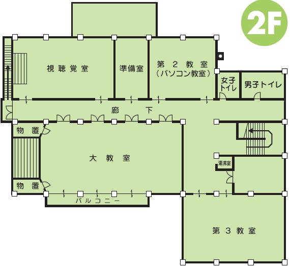 ※図の各教室をクリックすると、写真と収容人数をご覧いただけます。